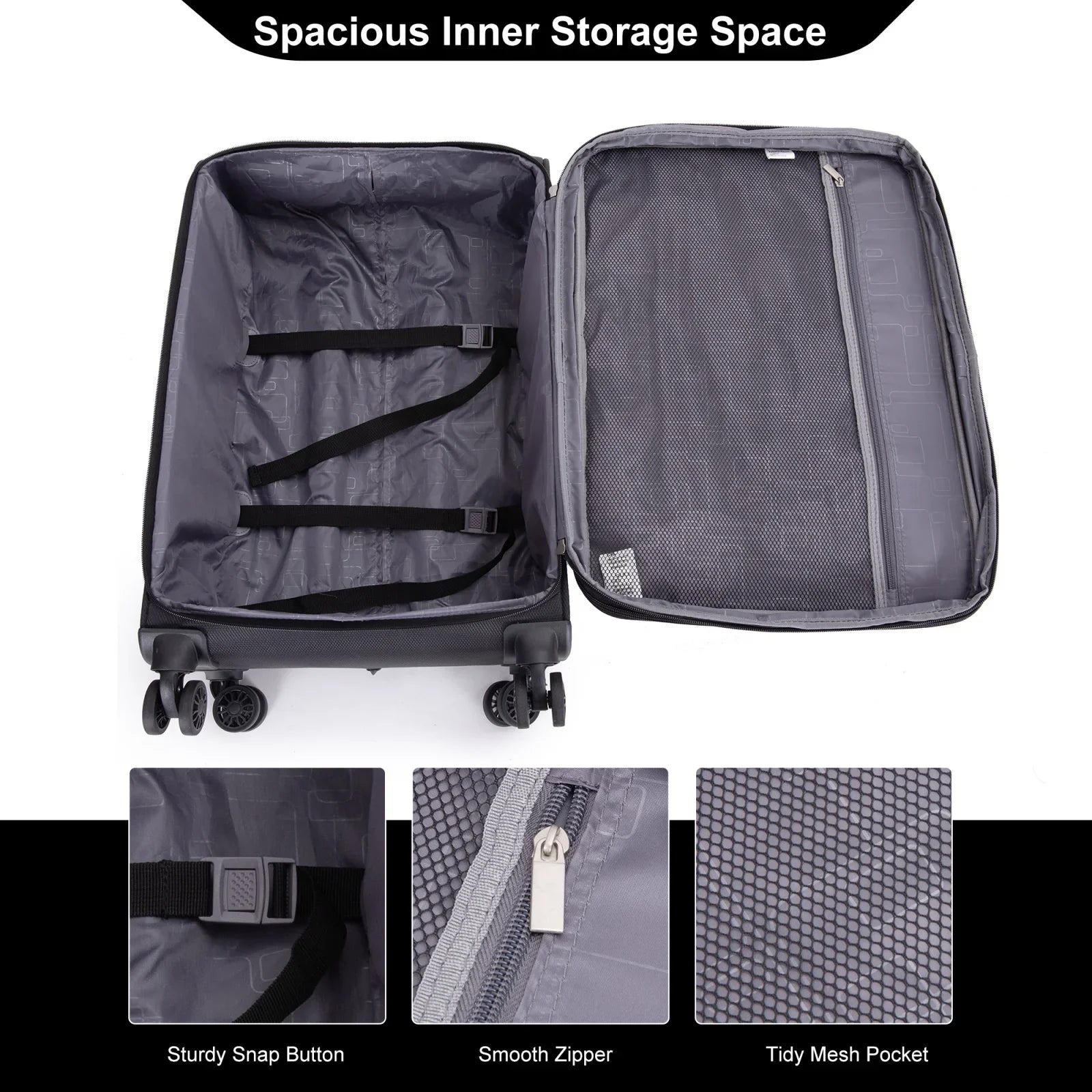 Easy to Maneuver: Silent Dual Spinner wheels rotate 360°, providing superior maneuverability and a smooth glide in every direction. Thanks to the suitcase's smooth-rolling wheels, even when fully loaded, it's a breeze to maneuver through crowded airports and busy streets without feeling fatigued or strained.