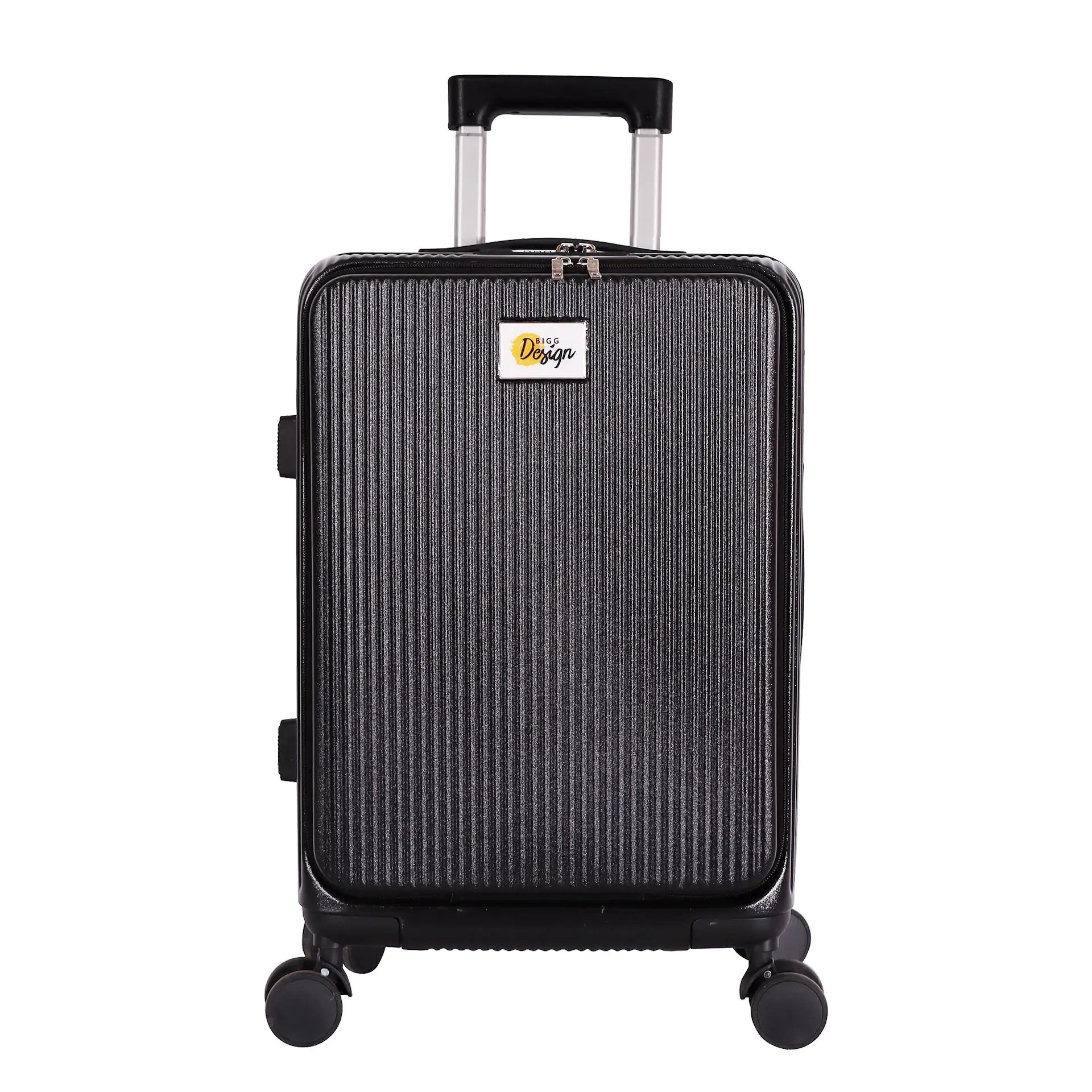DURABLE & STYLISH: Biggdesign Moods Up black suitcase is made of ABS and PC materials, those provide a balance between strength and flexibility. The ABS material provides superior protection against bumps and scratches, you can carry your belongings safely.