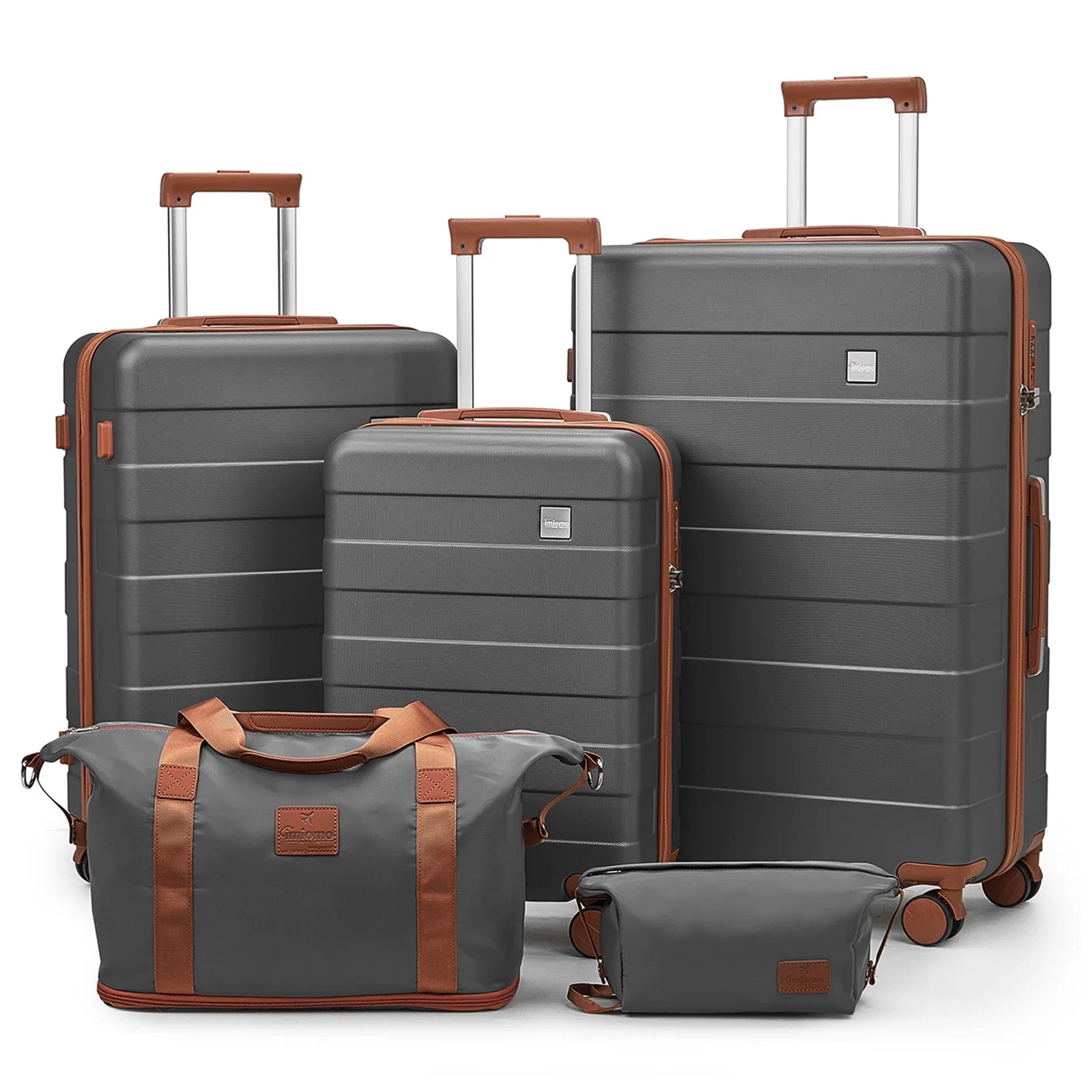Travel Luggage Set 5 Piece (Lightweight, Hardside, Durable): Includes 20/24/28 inch luggage suitcase, waterproof expandable Travel Duffel Bag and Makeup Bag. Make your trip more convenient. Suitable for different types of travel (Business, Short or long Trip, Hiking, Family Travel, Weekend Getaway, Overnight, Chic Travel, Train Travel and so on. )